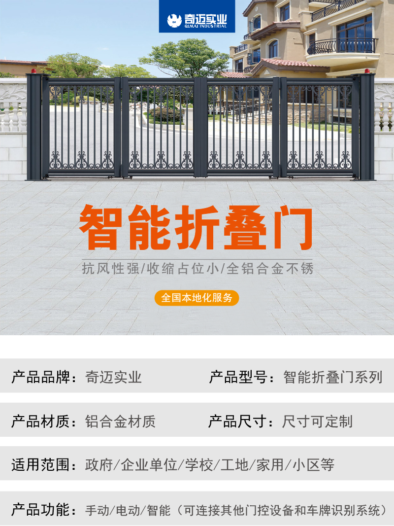門排左右并排折疊,開啟凈空大,關門縮位小,整體造型美觀大方,堅固耐用,
